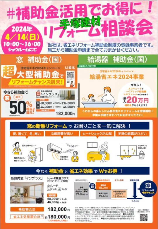 【イベント】 4月14日(日)に、当社ショウルームにてリフォーム相談会を開催いたします。