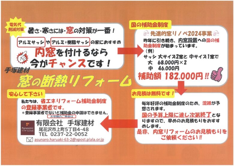 昨年大好評だった、国の内窓補助金もスタートしています。(詳しくはチラシをチェック!)