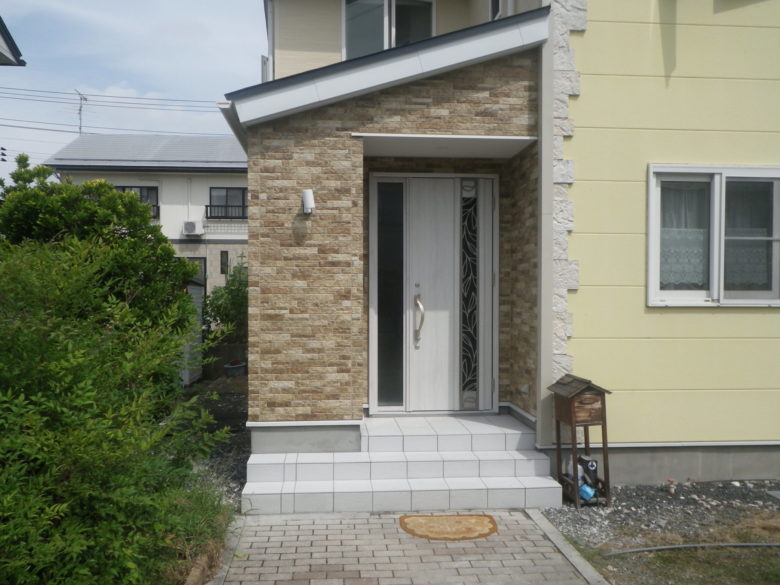 K様邸玄関改修工事 所在地 中山町 玄関廻りが雪により劣化してしまい、この度思い切ってリフォームをしようと決めたK様。 せっかくのリフォーム、間取りを変えて使いやすい玄関にしたいとのK様からの要望があり 今回の間取りを提案しました。 雨・雪による劣化が目立っていました。 解体をして、腐食部分もあることが分かりました。 腐食部分を補修し、間取りを変えて施工しました。 以前と同じ様な外壁を貼り今回は壁を付けました。 開口部が大きなFIX袖採風ドアを取り付けました。