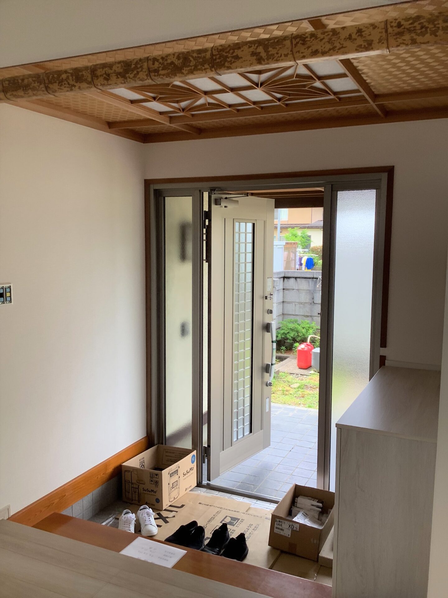 F様邸 玄関扉交換工事【1DAYリフォーム】 築年数を重ねたお宅に多い、落ち着いた昔ながらの引戸タイプの玄関扉でした。 家の顔である玄関。 扉の両サイドに明かり採りのFIX部を設け、より一層ステキな玄関に変身しました(*^^*)和から洋に大変身!! 扉のカバー工法で1日で施工完了しました! 扉の両サイドに明かり採りを設けたことにより採光性アップ! 日中であれば、出入りの際や来客時にも電気をつける必要がなくなるので、光熱費の削減にもつながります。