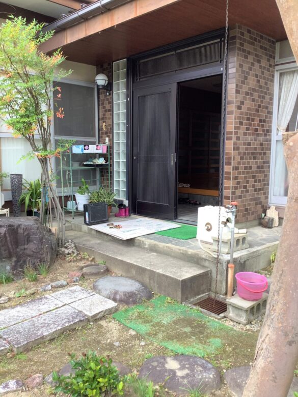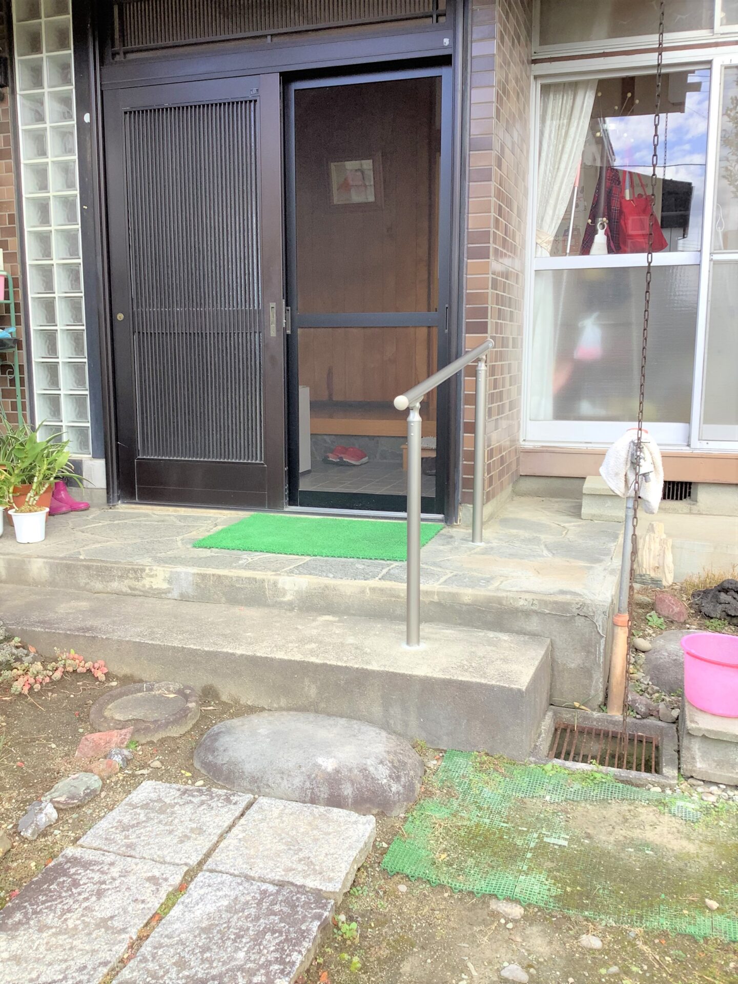 S様邸 玄関手すり取付け工事 after 【LIXIL TOEXグリップライン】 しっかり握るのに最適な太さのΦ38(38㎜)を設置しました。 手すりを設置したことで、玄関前の段差も安全に歩行できるようになりました。 before 玄関前の段差。 冬場は特に凍結や積雪で足を滑らせてしまう危険がありました。 ここに手すりがあれば、、、、とお施主様より設置依頼を受けました。